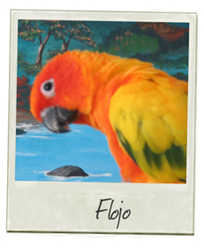 The mascot, and cutest member of the Clear Designing team, is a Sun Conure called Flojo. Raised by Chris and Danielle from a hatchling, this ball of energy thinks she's a human, and although Chris won't admit it, she knows she's the boss! |