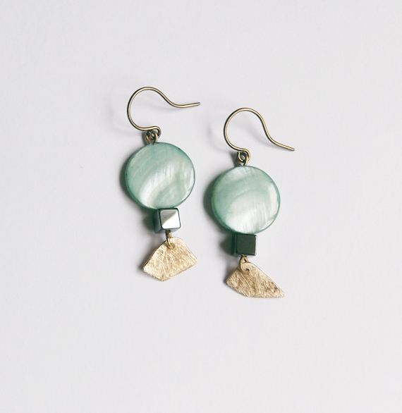 earrings is made from aqua green shell coin beads,